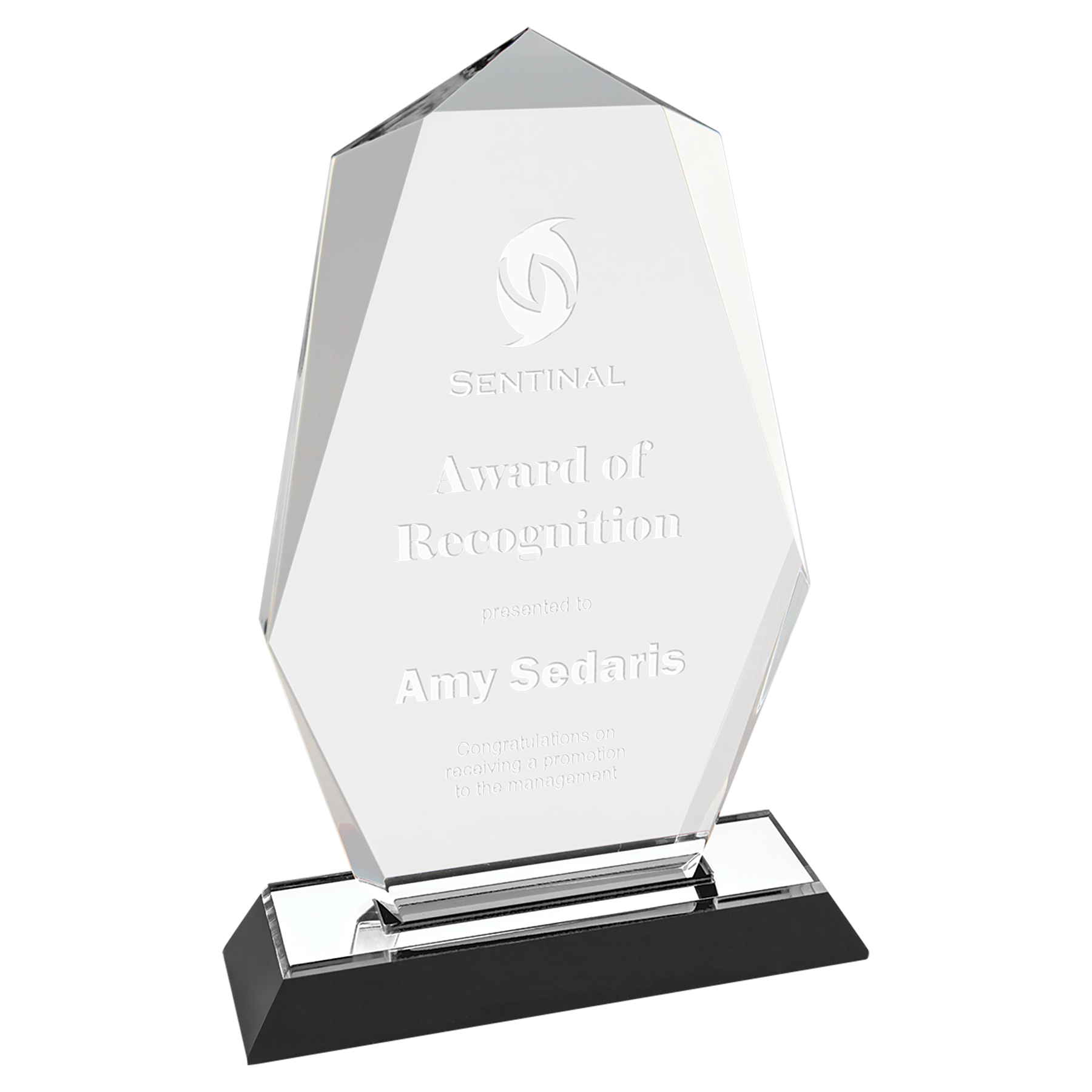 The 1/2" thick Silver Octagon Point Impress Acrylic is cut and beveled to form an octagon design. The colored mirrored top of the black acrylic base reflects upward through the clear beveled acrylic creating a simple, stunning effect. Perfect for your company's quarterly achievements, retirements, anniversaries, or any milestone that deserves recognition. Available in 3 sizes and 3 colors.