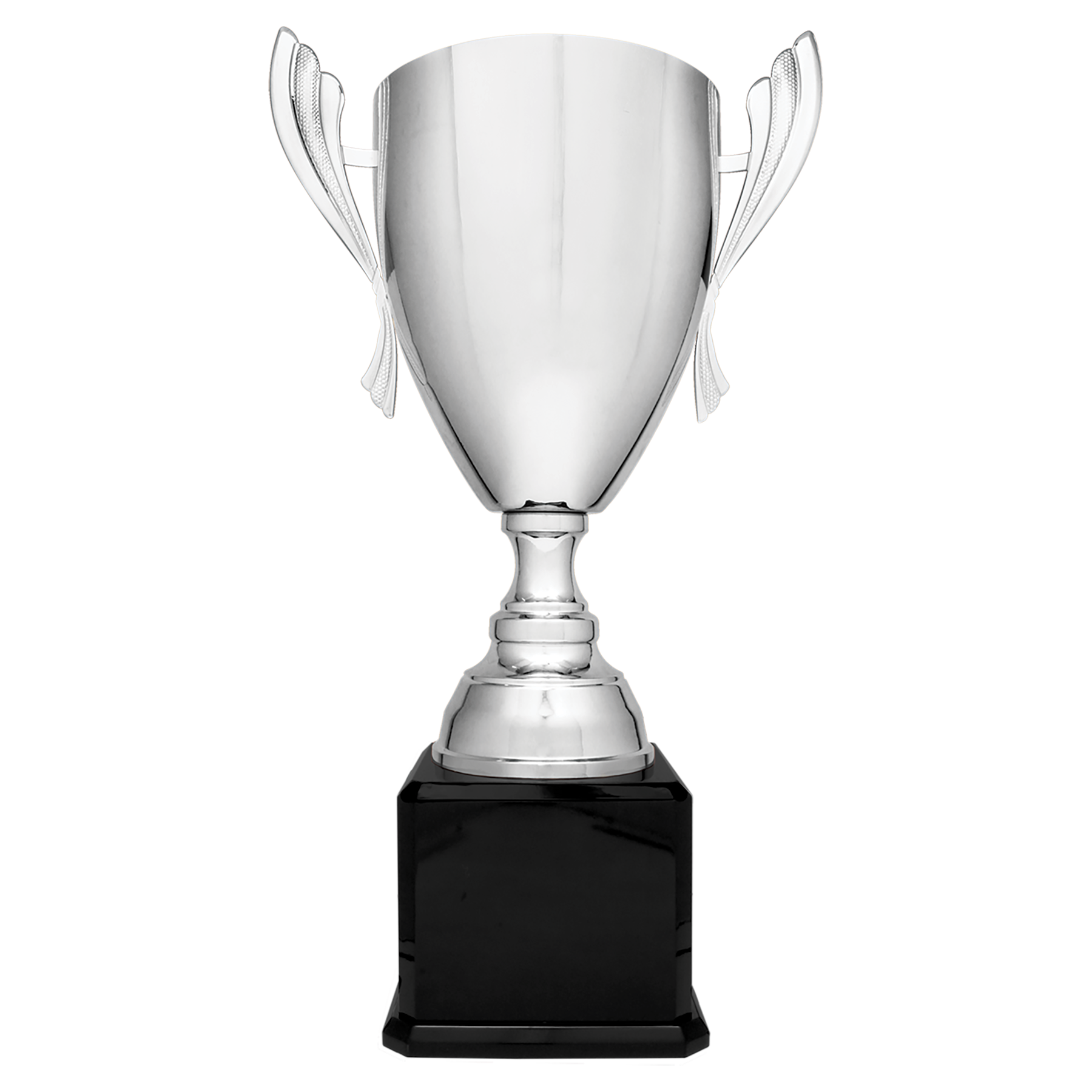 Our 26 1/2" Silver Completed Metal Cup Trophy is a traditional metal cup that is the ultimate in recognition, from athletic achievements to corporate awards. The cup has a highly polished gold finish with ornate handles and is mounted to a rosewood piano finish base that has plenty of room to personalize.