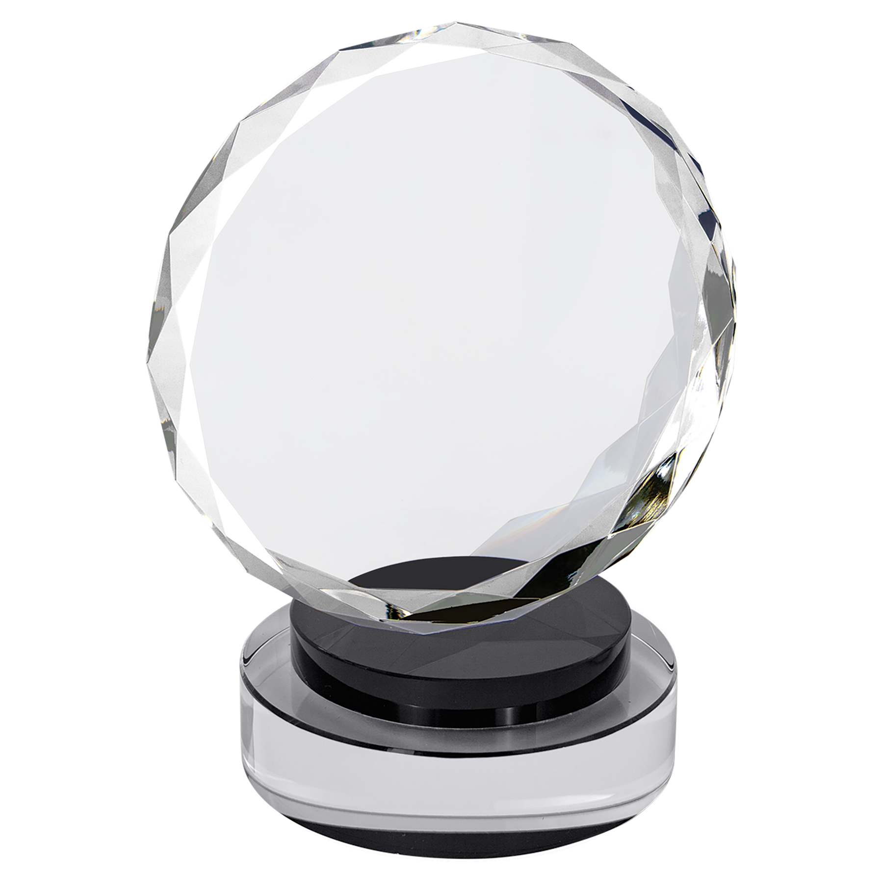 6" Round Facet Crystal on Black & Clear Round Base Corporate Awards - Premium Crystal Awards