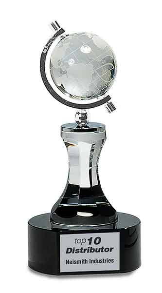 The 8 1/2 Inch Crystal Spinning Globe award mounted on a pedestal is the perfect way to recognize the accomplishments of someone special. Mounted on a black base, this award features beautiful clear crystal and an interactive spinning globe. The crystal shines and only brings more attention to your personal engraving.