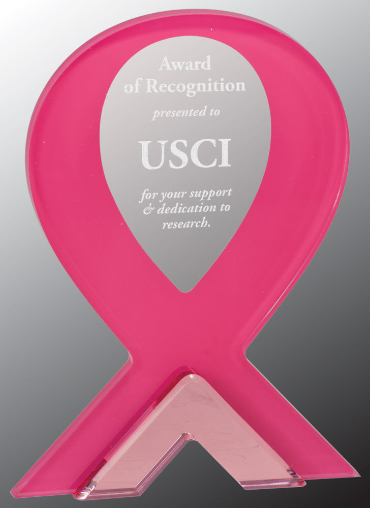 Present this Pink Ribbon as a symbol of appreciation to esteemed donors of breast cancer research, prevention, and awareness. Available in 2 sizes.