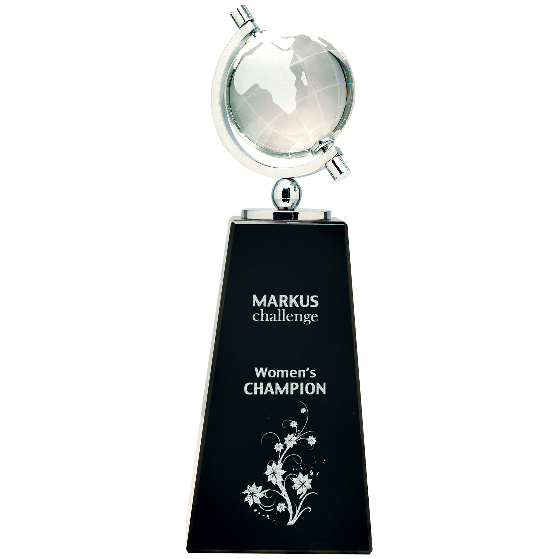 This 9" beautifully crafted spinning crystal globe on an elongated black base is the perfect way to recognize the accomplishments of someone special. The shine of the crystal only brings more attention to your personal engraving.